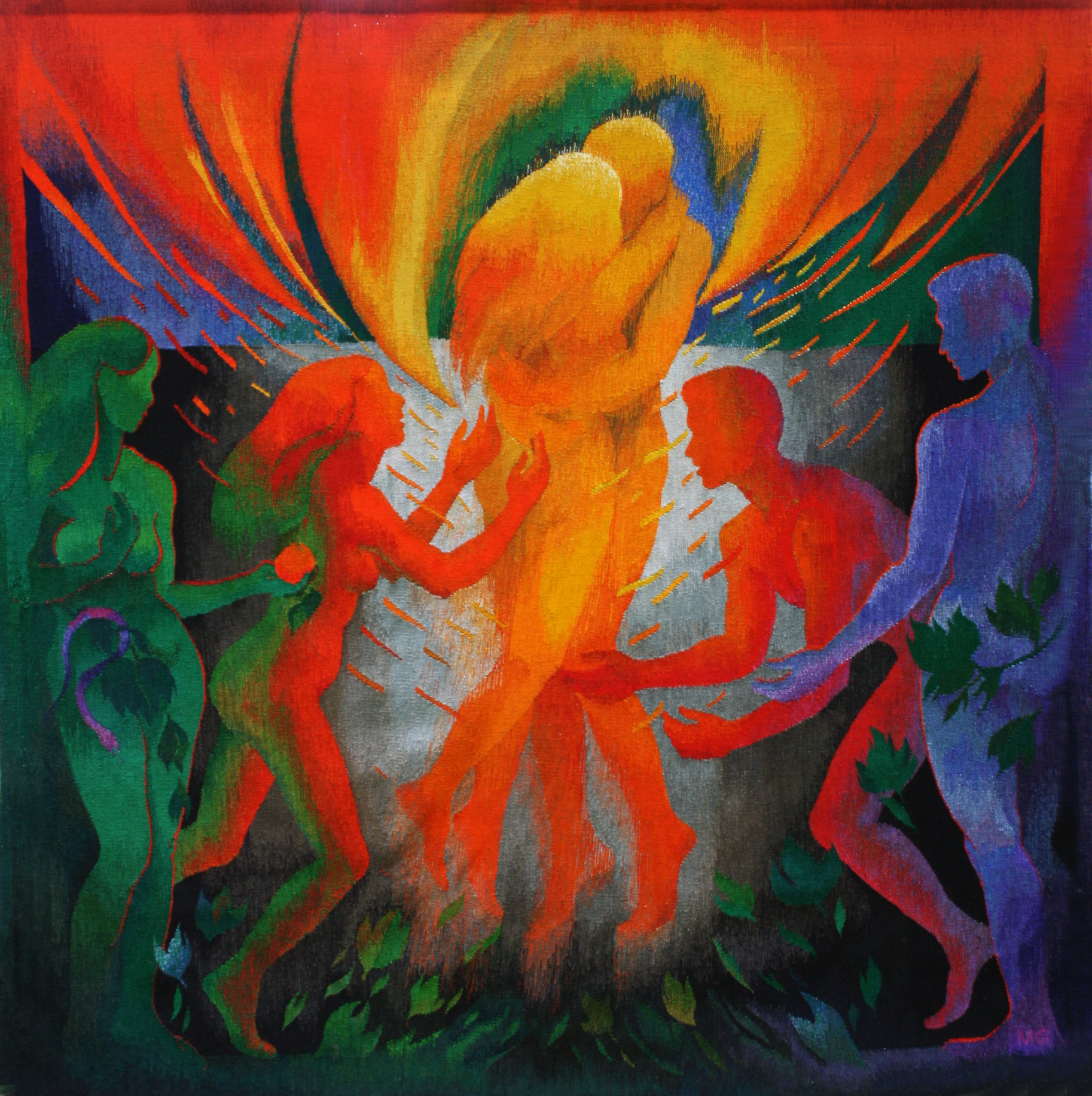 DEDICATION TO THE FOUNDERS OF MICROBIOLOGY. 1983, triptych 210x460cm, wool, linen