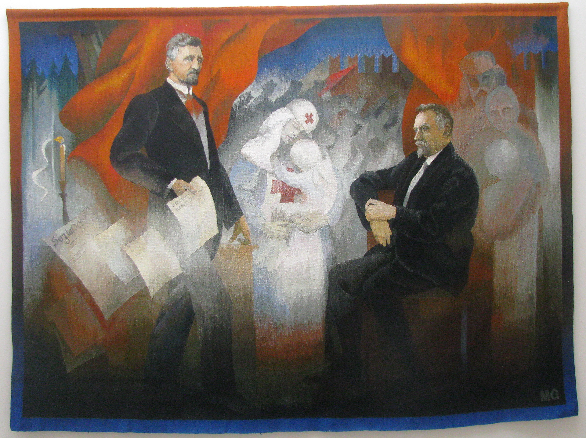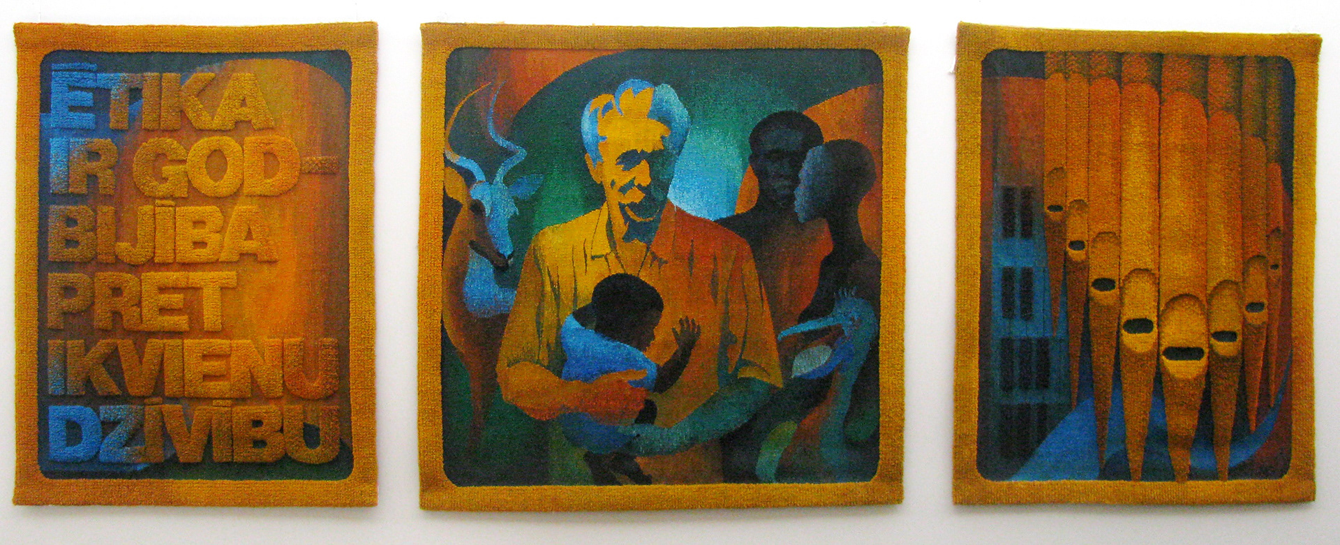 DEDICATION TO ALBERT SCHWEITZER. 1983, tryptich, wool, linen